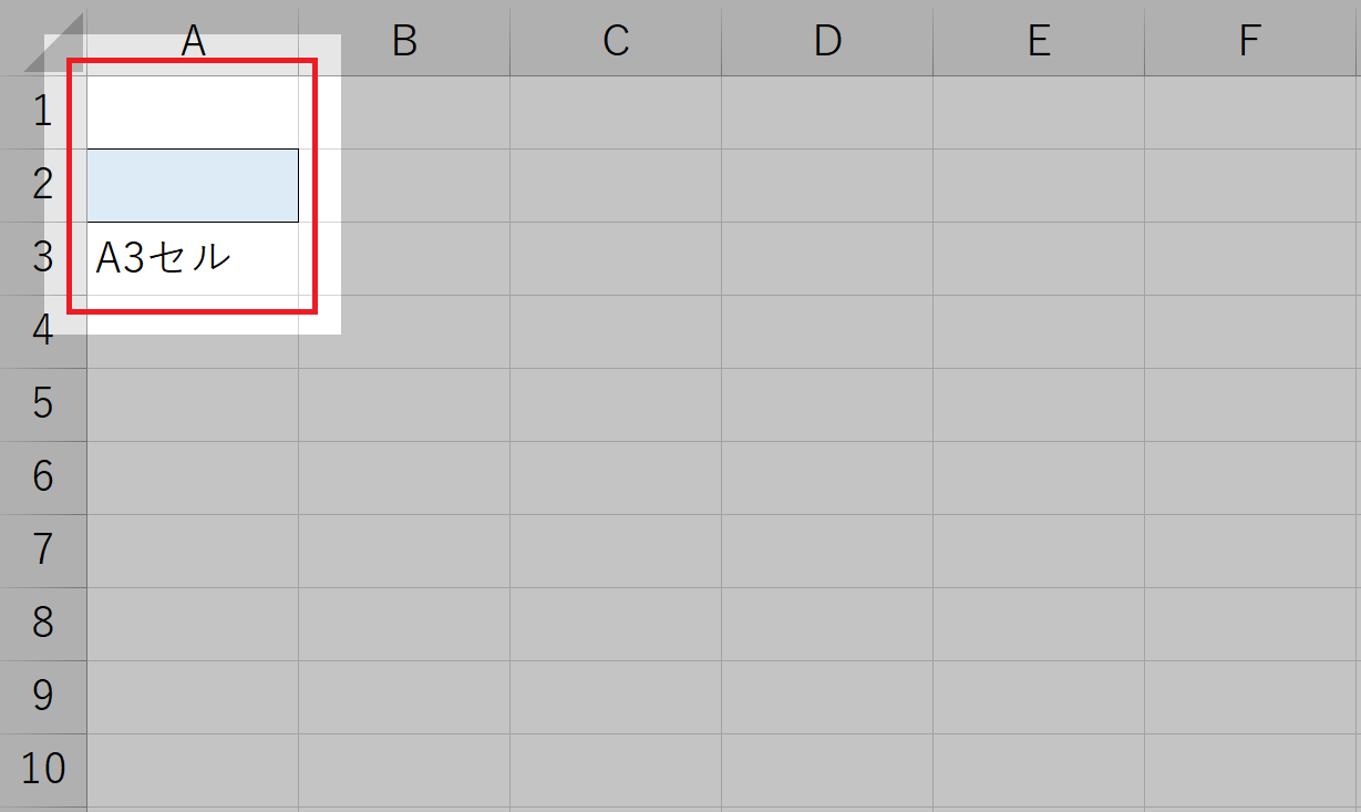 作業前のワークシートです。セルA1からA3に文字、背景、罫線、書式設定(中央寄せ)を用意しています。