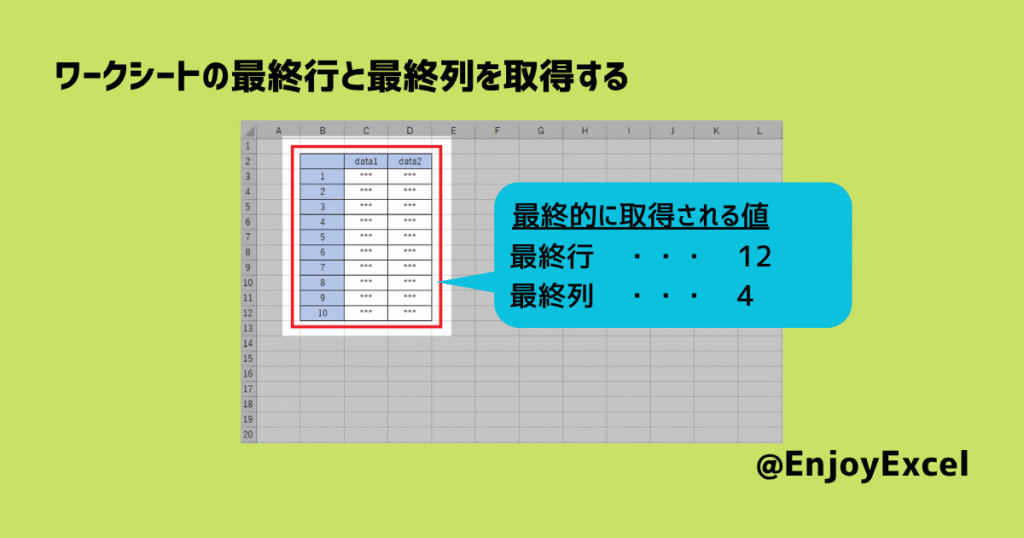 ある表の最終行と最終列を取得する為のコードを1枚の画像で表現してみました。